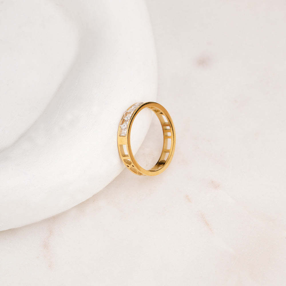 Inspired by the brilliance of the northern lights, the Aurora Frame Sparkle Ring features radiant accents framed in a sleek band that catches the light with every move. Its dazzling yet refined design makes it a perfect piece to elevate both casual and elegant looks. Whether worn solo as a statement or styled with other slim rings for a layered glow, this sparkle ring adds effortless sophistication. A must-have for jewellery lovers seeking brilliance, balance, and versatile glamour in their everyday collection.
